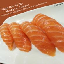 There is no where else in Orange County where you can get a quality beer for that price! $12 for a pitcher of Sapporo all day on Mondays and Tuesdays and on all other weekdays from 2pm till 5pm. Why? Because we love to drink when we eat sushi, especially good sushi! Enjoy our beer but also enjoy our $2.99 sushi, and $3.99 appetizers, which are also available during our absolutely awesome Happy Hour. Now, you have no excuse for not coming by for the best deal in all of Orange County!